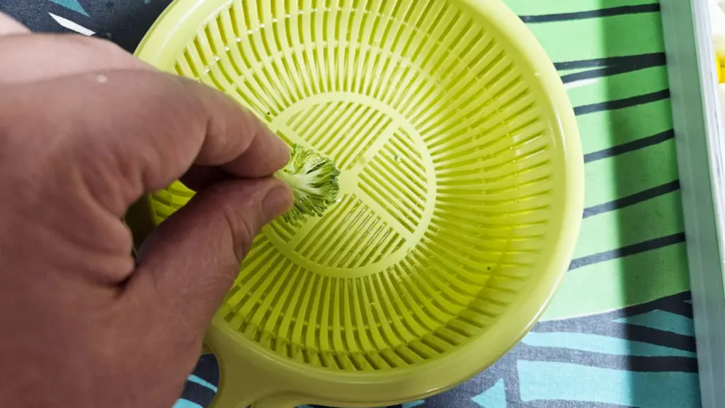 - ブロッコリーは小房に分け、蕾の部分を軽く水で洗う。