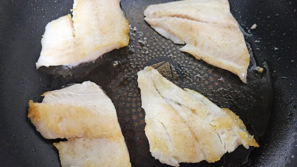 - 身の側面に白いラインが出てきたら裏返し、軽く火を通す(完全に火が通らなくてよい)。