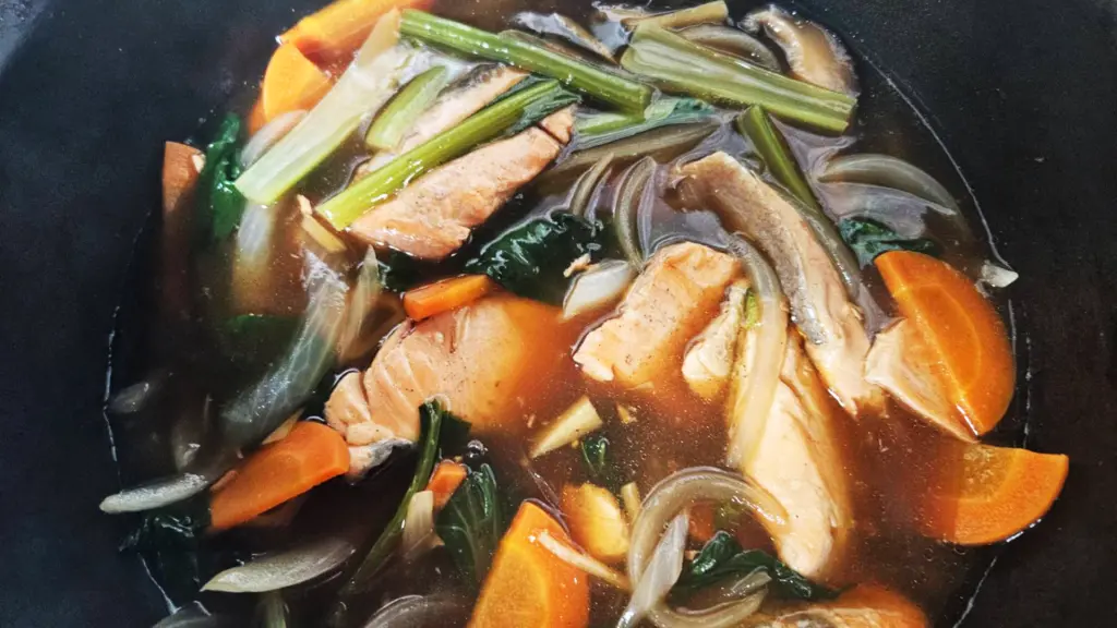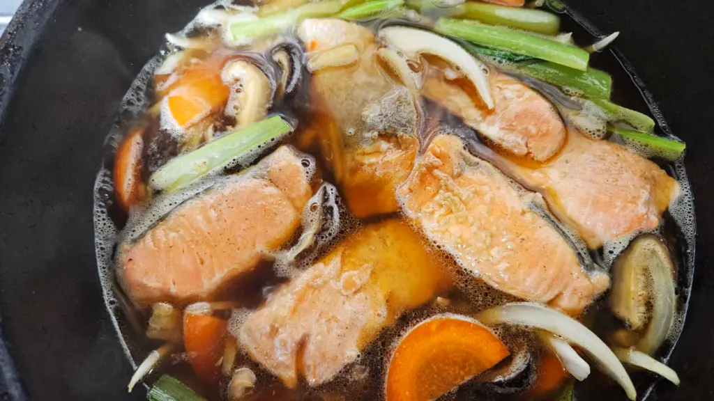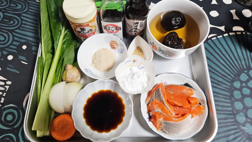 • 鮭の脂と干し椎茸のだしが合わさり、やさしい甘さと深みのある味に仕上がります。