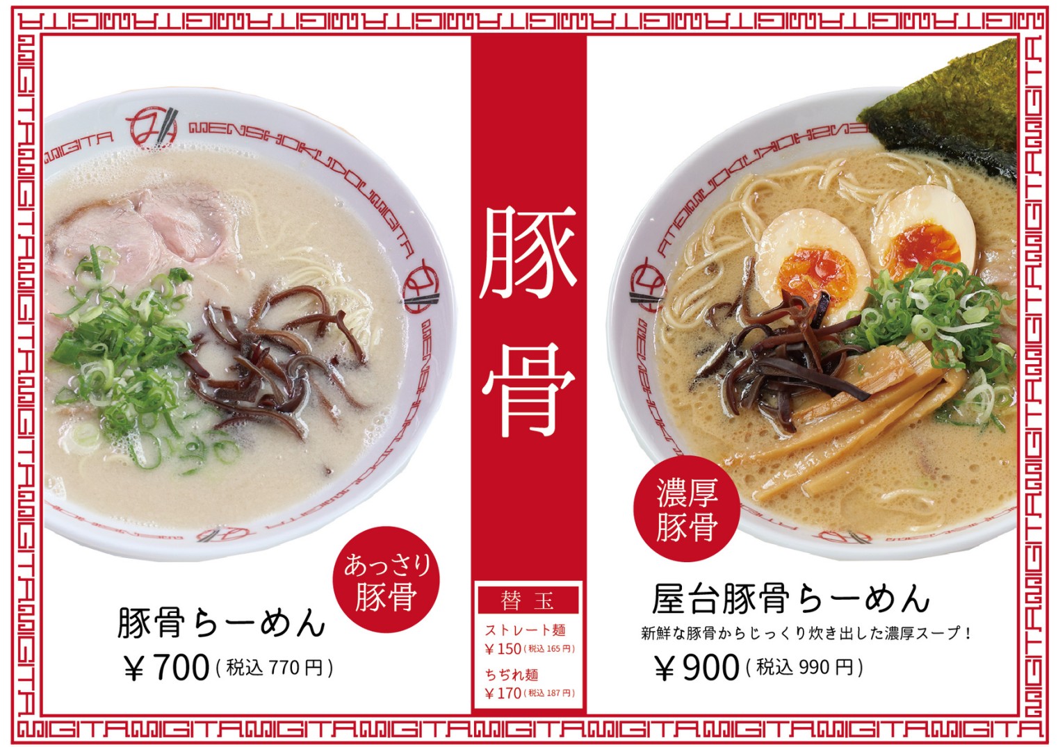 とんこつスープは頭骨とげんこつを使用し、じっくり炊き出すことでマイルドな味わいに仕上げ、呼び戻しスープで濃さが均一になるようにしております。