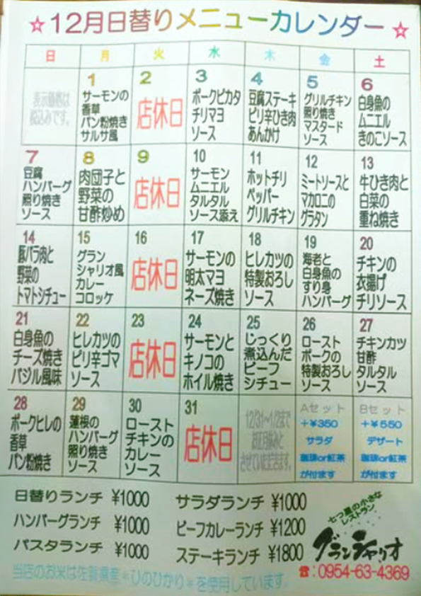 佐賀県鹿島市古枝にある、七つ星の小さなレストラン「グランシャリオ」様の紹介ページです。店内は、レンガと木を基調とした開放感ある洋風の造りで、ゆっくりとお食事やカフェの出来る素敵な空間です。本格的な洋食が食べられるレストランとして、女性のお客様に人気を集めております。一番人気は、熱々の鉄板に入った国産牛100%ミンチを使用したふんわりジューシーな手作りハンバーグ。自家製の和風オニオンソースが決め手です!その他、パフェやコーヒーなどのカフェメニューも充実!毎日変わる日替わりランチ (1,000円 (税込))も、安くて美味しいとOLさんやママさんを中心に大好評!モーニングからディナータイムと分かれており、全ての時間帯で、違うメニューが豊富に準備されてますよ!ぜひ一度足を運んでみて下さい!