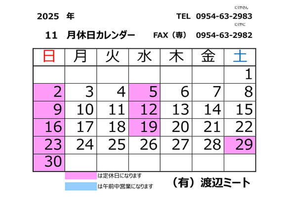 | 定休日 | 日曜 他 2025年11月のお休みはこちら |