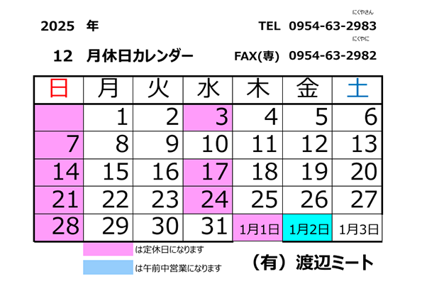 | 定休日 | 日曜 他 2025年12月のお休みはこちら |