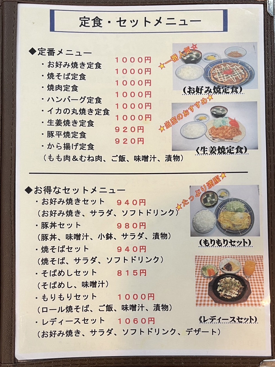 | お好み焼きミックス | 1,130円 ※大盛り +260円 ※トッピング +200円 |